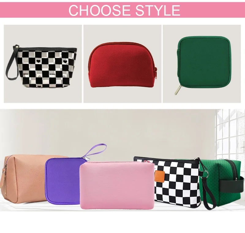 The zipper pouch configuration incorporates reliable closure mechanisms that maintain security during transportation and handling. Neoprene material demonstrates exceptional durability characteristics, resisting tears, punctures, and general wear that commonly affects other storage materials. Small travel makeup storage bag dimensions accommodate essential cosmetic items without creating excessive bulk, making them ideal for carry-on luggage restrictions and limited storage spaces. The customization capabilities allow for logo placement and branding integration, transforming functional storage into promotional tools or personalized accessories that reflect individual or corporate identity preferences.