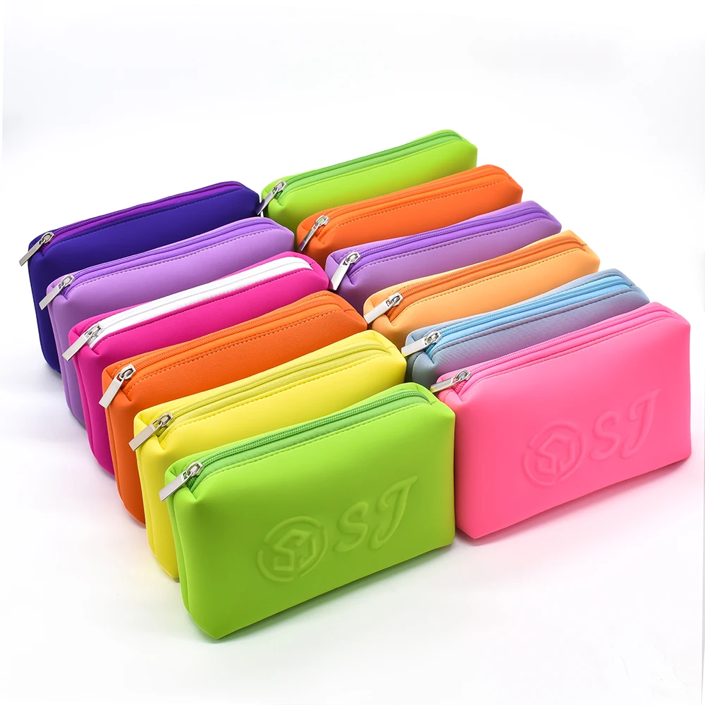 Temperature resistance characteristics of neoprene ensure that extreme heat or cold conditions do not compromise bag functionality or appearance. The compact design maximizes internal storage capacity while minimizing external dimensions, optimizing space utilization for travel scenarios. Custom logo capabilities enable brand recognition and professional presentation, making these bags suitable for corporate gifts, promotional items, and retail applications. Easy maintenance requirements allow for simple cleaning procedures that maintain hygiene standards essential for cosmetic storage applications. The lightweight construction reduces overall luggage weight while providing robust protection for valuable cosmetic investments.